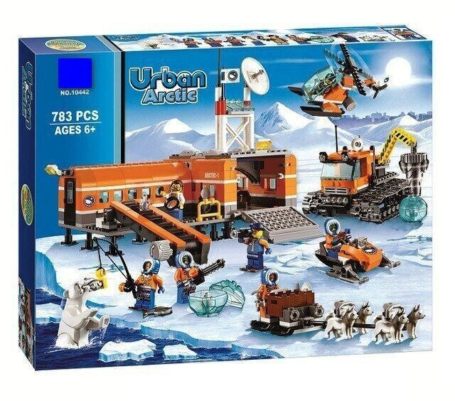 У самому серці безкрайньої білосніжної Арктики розкинувся досить великий табір відважних полярників. Команда з семи мініфігурок - чотири дослідники, вчений, його асистент і пілот вертольота - відважно працюють кожен день, поповнюючи базу знань про природу, ресурси і клімат цього північного регіону планети. У наборі є житловий блок-лабораторія з рухомим конвеєром для видобутих мінералів і стінкою-трапом, що відкривається, гігантський гусеничний всюдихід з буром для риття котлованів і взяття проб ґрунту, вертоліт з котушкою троса і сіткою для вантажів, снігохід і візок-упряж. Тваринна частина набору представлена великим білим ведмедем, якого регулярно підгодовують на полярній базі рибкою, і чотирма веселими лайками - пухнастим «мотором» упряжі.