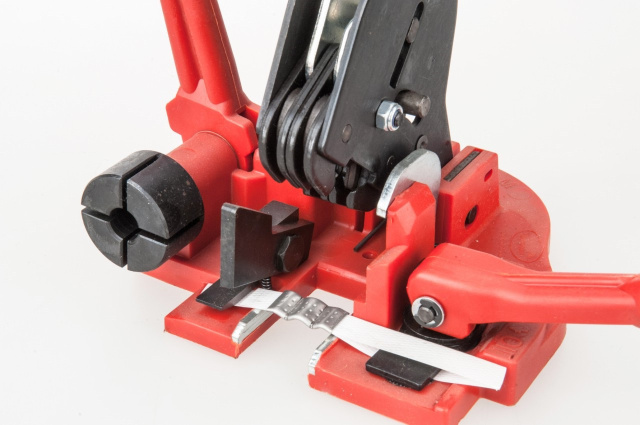 Комбінований пристрій-натягувач для обвязування важких вантажів. Виконує три дії: