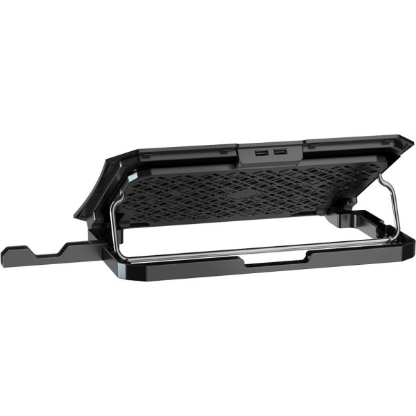 Охолоджувальна підставка для ноутбука GamePro CP350 допомагає знизити нагрів під час роботи та ігор. Активне охолодження забезпечують 2 великі вентилятори 125 мм (до 1000 об/хв), є 5 рівнів регулювання висоти для зручного кута нахилу. Підключення та живлення — через USB, передбачено 2 USB-порти (USB-хаб) і слот/тримач для смартфона, також є підсвічування.