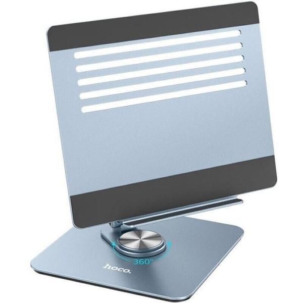 Hoco PH52 — настільна складана підставка для планшета/ноутбука, щоб зручніше працювати, навчатися або дивитися контент. Металевий корпус з алюмінієвого сплаву та силіконові накладки допомагають надійно фіксувати пристрій. Підтримує регулювання висоти та кута нахилу. Поворотна конструкція на 360° дає змогу швидко змінювати положення екрана. Підходить для пристроїв з діагоналлю приблизно 7–12.9 дюйма. Є вентиляційні прорізи для кращого охолодження.