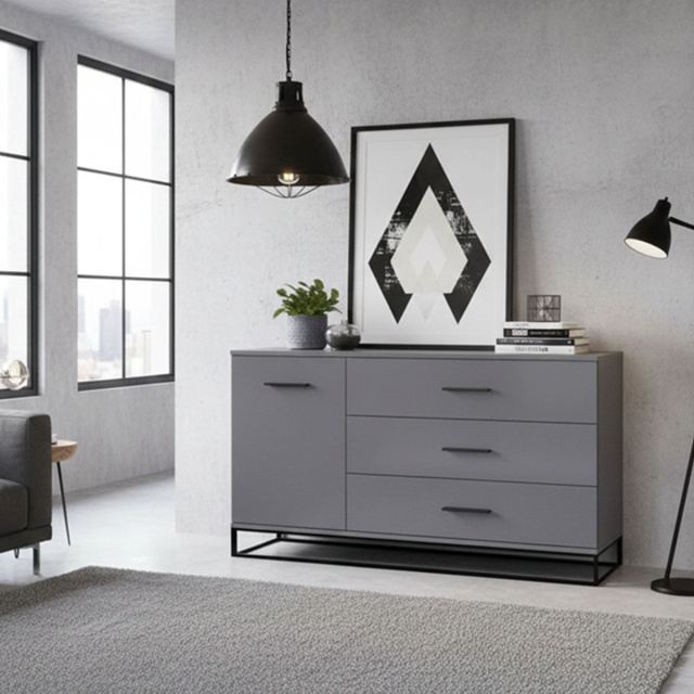Комод в стиле лофт – это максимум удобства, организованности и утонченной простоты. В нем легко разместится приличное количество вещей, решив вопрос хранения практически и эстетично. Комод Ascet 1200 оснащен тремя вместительными выдвижными ящиками и дополнительной боковой секцией, закрытой дверцей. Корпус и фасады выполнены из ламинированной ДСП 16 мм толщиной, а стойкость конструкции обеспечивает цельнометаллическая опора из трубы 10х30 мм. Это прочная, надежная и выносливая мебель универсального применения, которая будет уместна и в спальне, и в гостиной, и в столовой, и в гардеробной комнате.